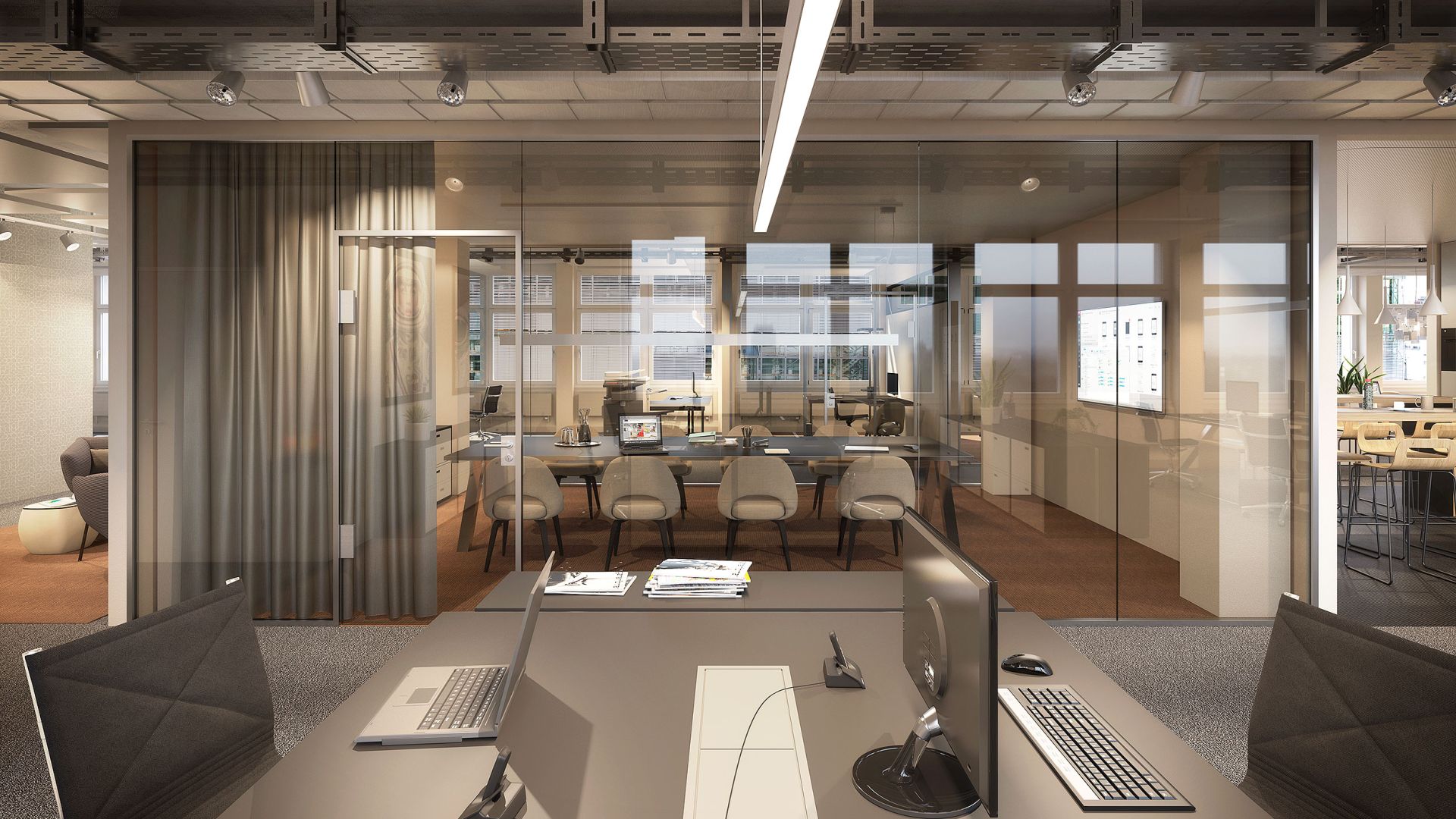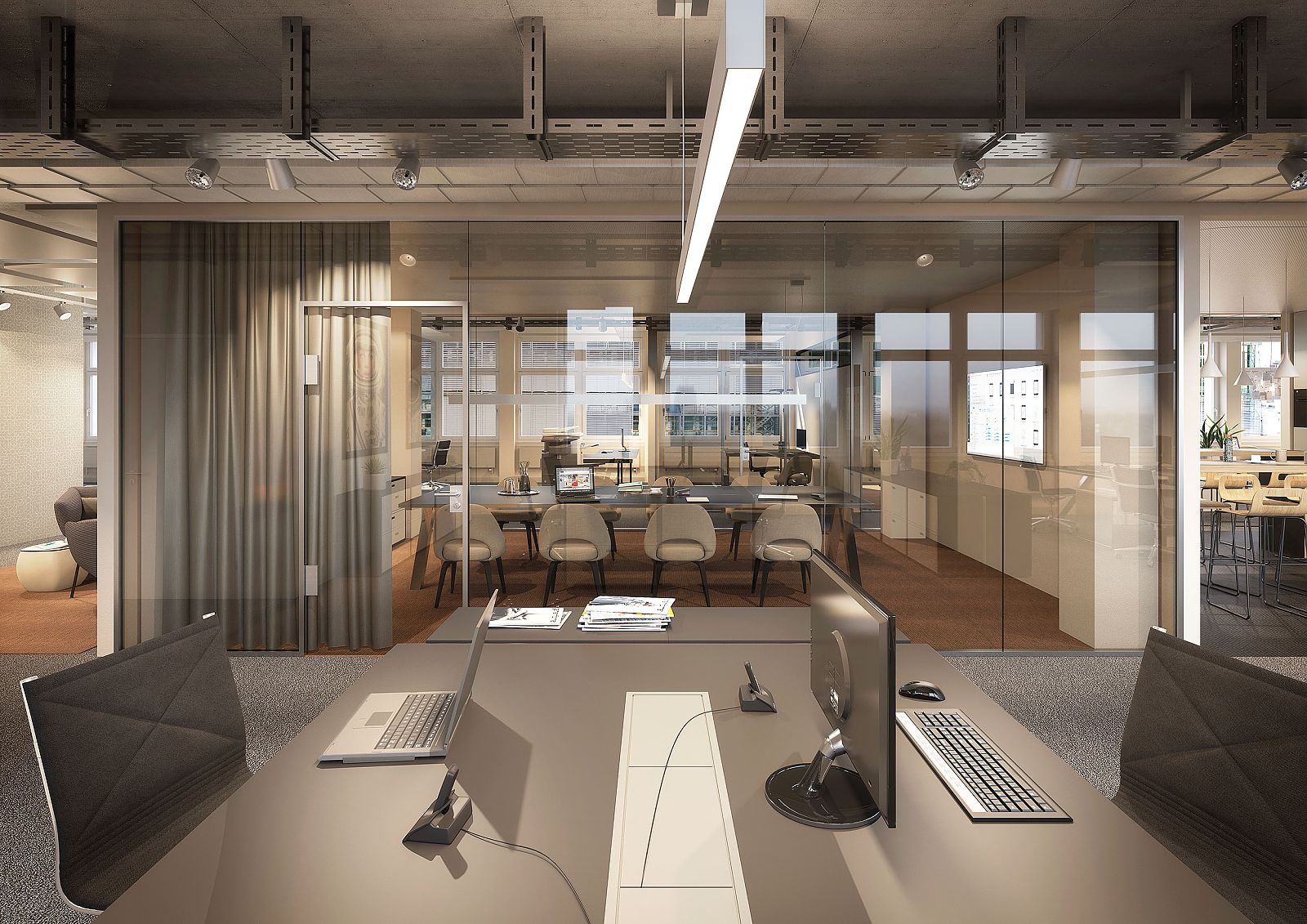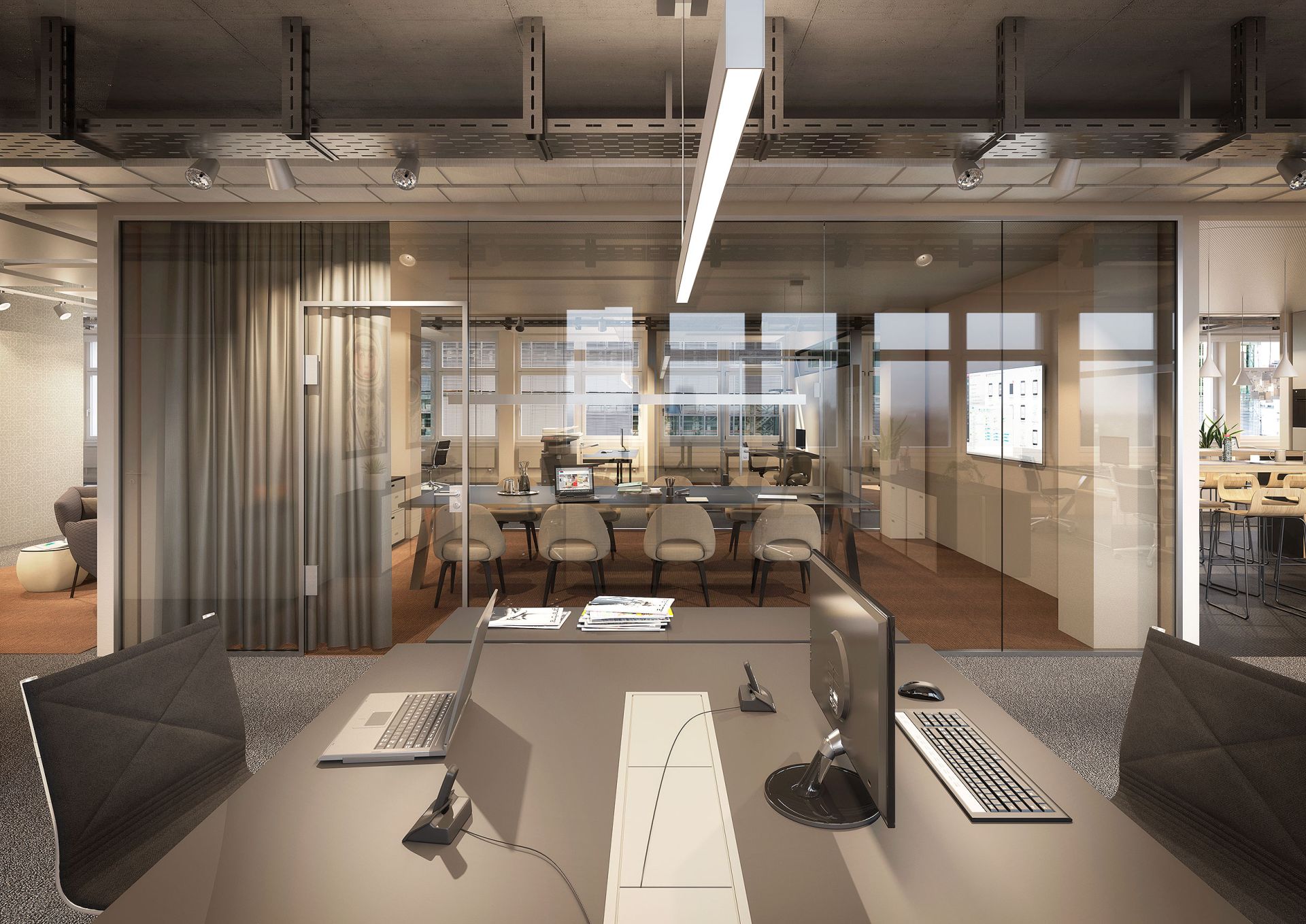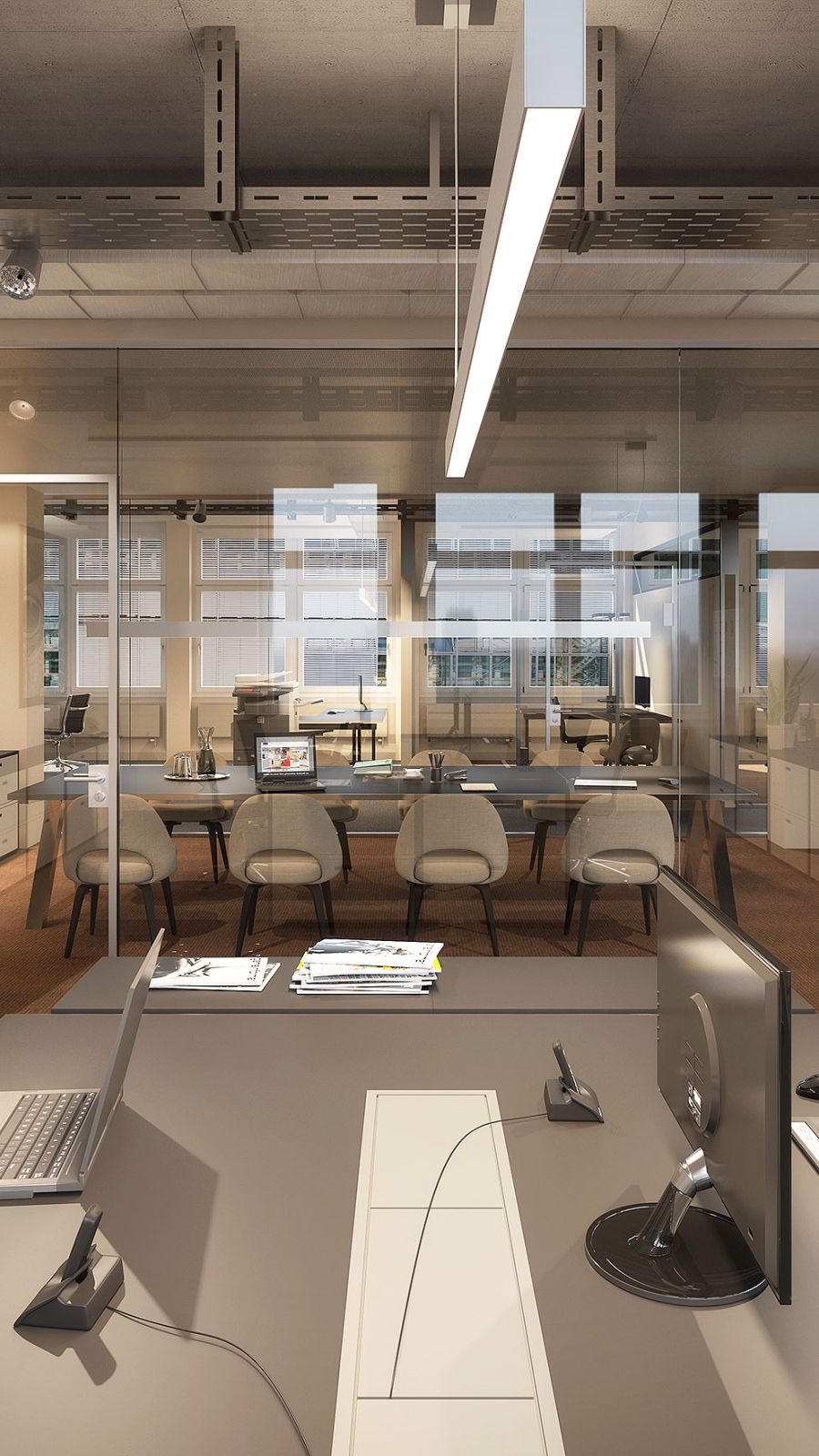 Ob Open Space oder Zellenstruktur – die offenen Grundrisse im DUPLEX lassen sich ganz nach den Wünschen der Mieter gestalten und zeigen eindrucksvoll, wie flexibel bespielbar die Büroräumlichkeiten sind. Lassen Sie sich von unseren beiden Möblierungs- und Materialisierungskonzepten inspirieren.