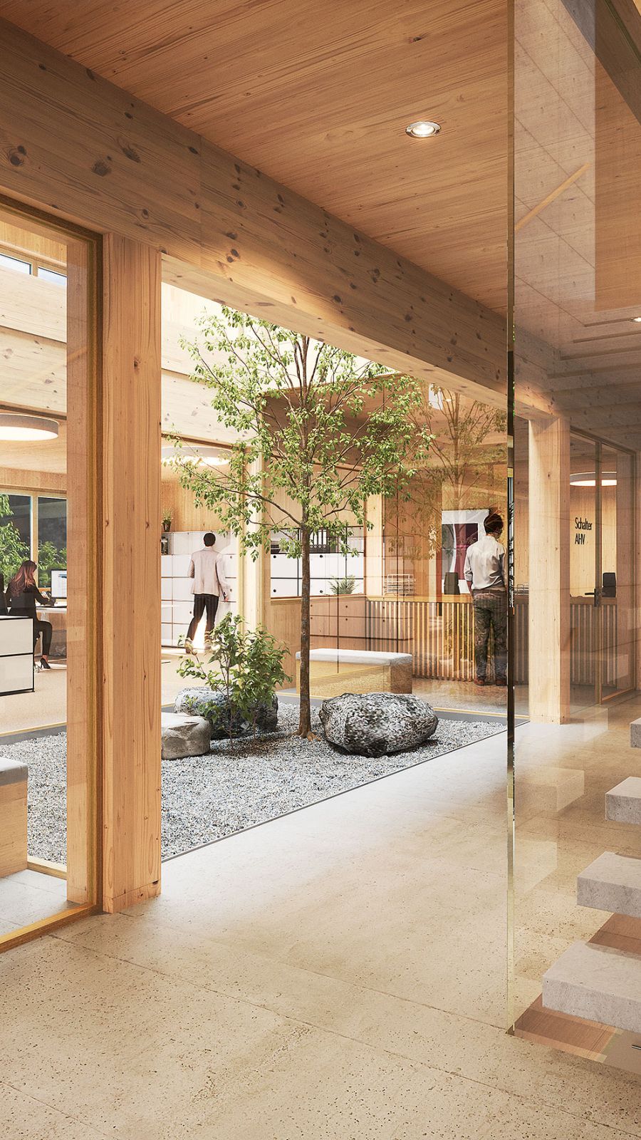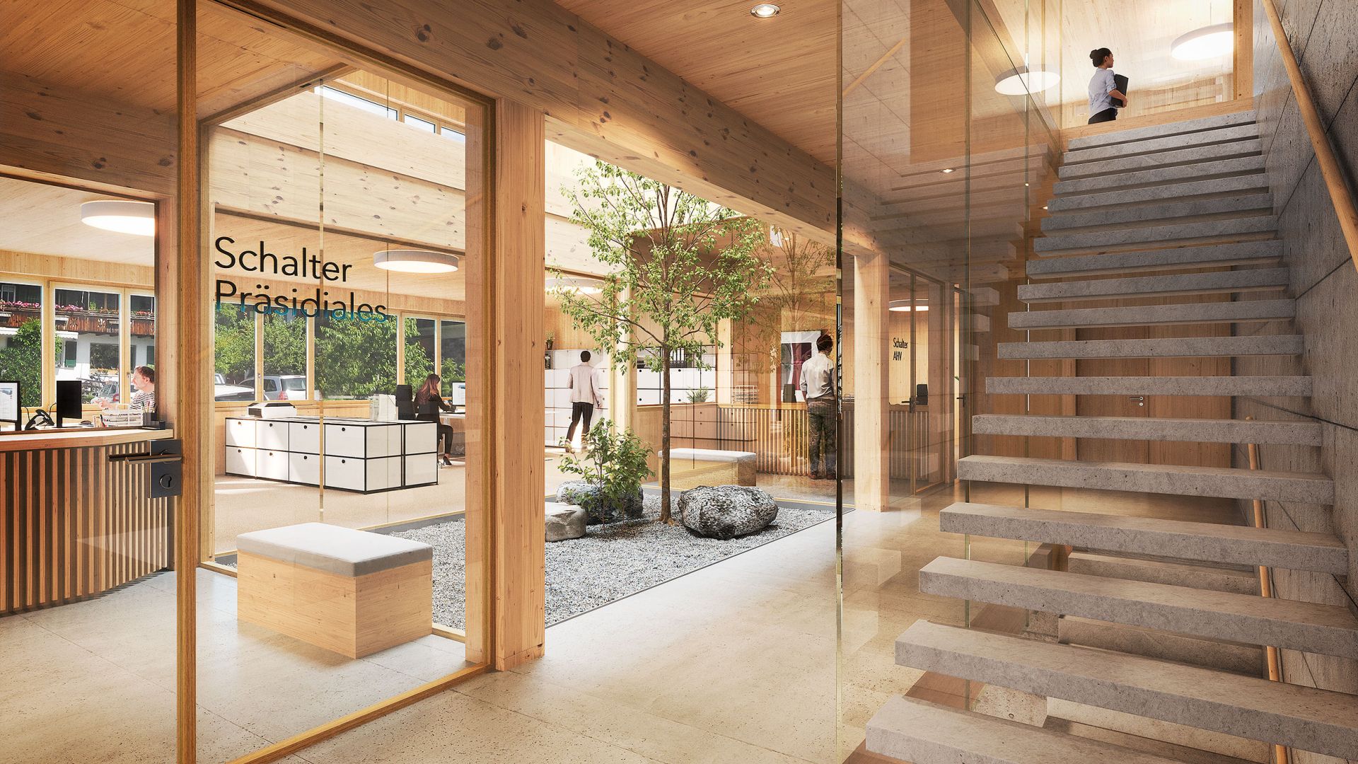 Neubau Gemeindehaus mit Einkaufszentrum Sigriswil. Es entsteht ein Gebäude in zeitgemässem modernen Holzbau für die neue Gemeindeverwaltung und im Erdgeschoss eine Filiale von Coop.