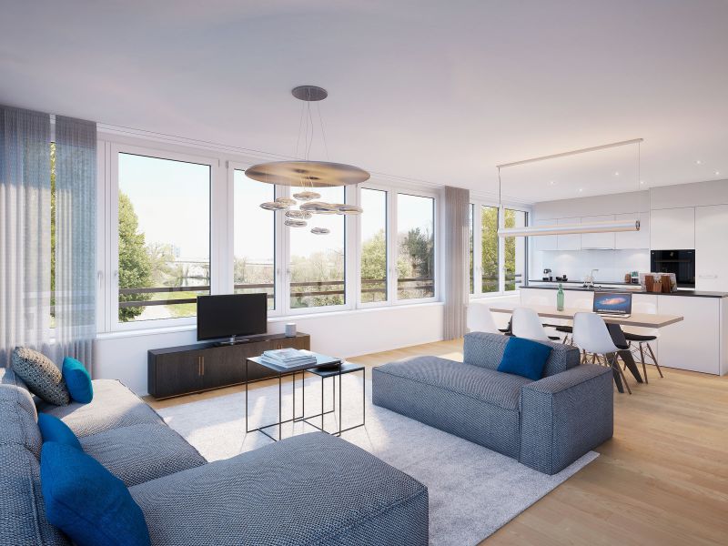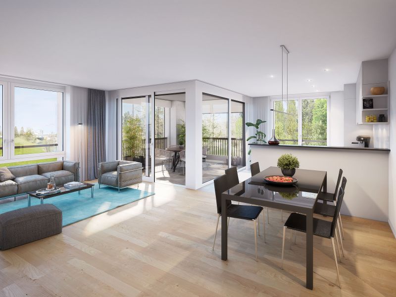 In den loftartigen Wohnungen des Maschinenhauses spüren Sie die industrielle Geschichte der Mühle. Sämtliche Loftwohnungen sind dank der Bandfenster optimal belichtet und verfügen über einen grossen Balkon. Auch diese Wohnungen haben Zugang zur exklusiven Dachterrasse. Im Silo bestehen raumhohe Fenster und interessante Sichtbezüge charakterisieren die klassischen Wohnungen im Turm. Die verglasten Eckloggias laden auch spätabends noch zum gemütlichen Verweilen ein. Geniessen Sie den Mühlepark und die Weitsicht.