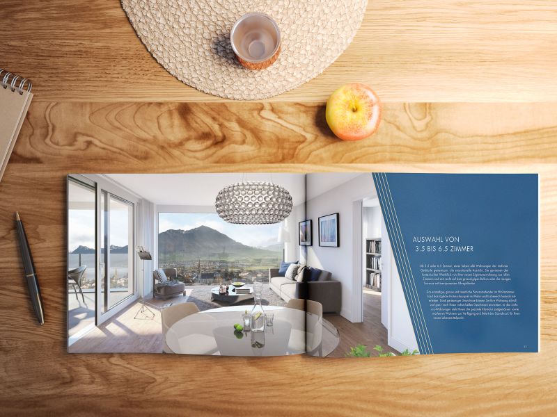 Swiss Interactive AG spielte eine wesentliche Rolle bei der Erarbeitung der Vermarktungsunterlagen. Um die hohe Attraktivität der Lage widerzuspiegeln, entwickelte unser Team einen vielfältigen Strauss an Massnahmen - insbesondere auf die digitalen und virtuellen Medien wurde ein hohes Augenmerk gelegt.