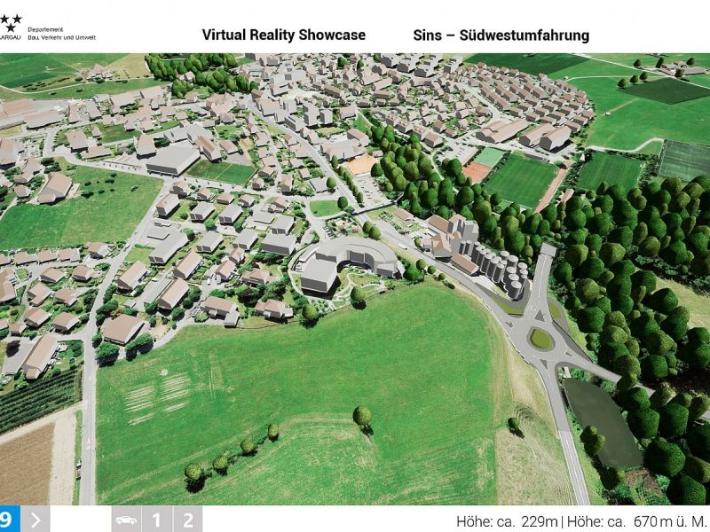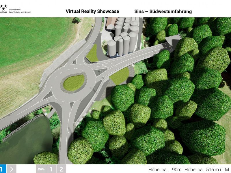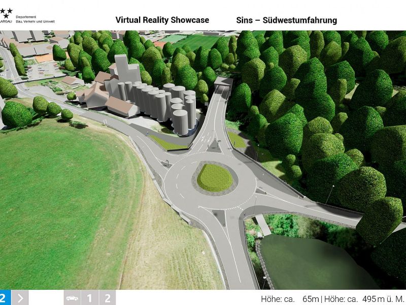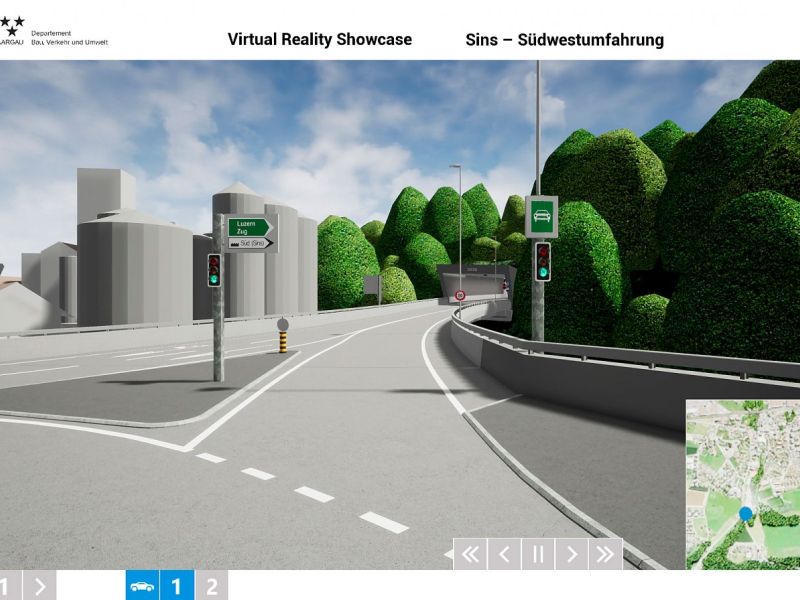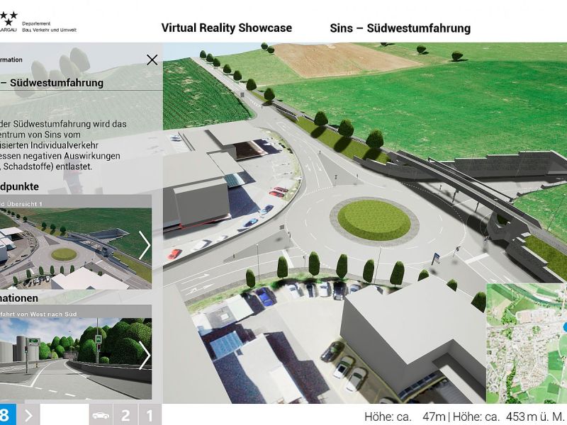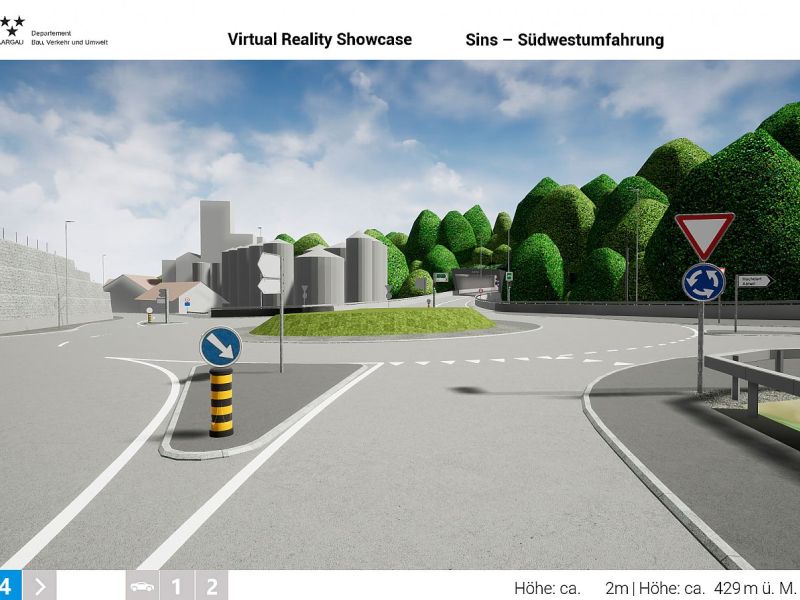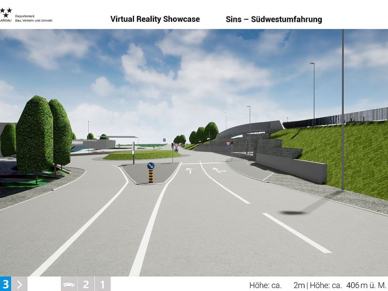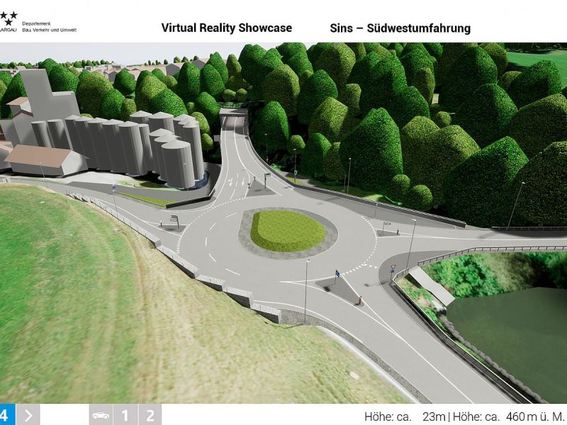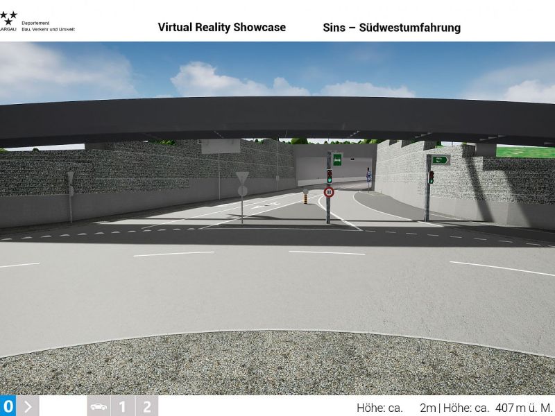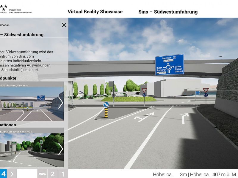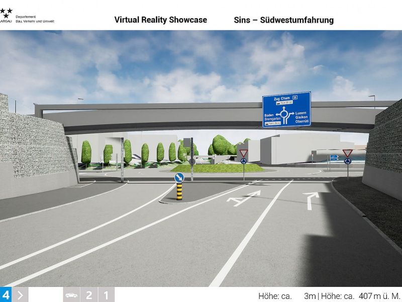 Im Auftrag des Departements Bau, Verkehr und Umwelt des Kantons Aargau realisierte Swiss Interactive AG ein digitales 3D-Verkehrs-Infrastruktur-Modell mit Integration der swisstopo-Daten. Das völlig frei begehbare 3D-Modell mit Darstellung des kompletten Projektes wurde als Desktop-Applikation entwickelt. Als Grundlage für die Umsetzung dienten die 2D-Plandaten der Ingenieure. Das digitale 3D-Datenmodell wurde in Unreal integriert und mit sämtlichen Funktionen programmiert. Das digitale 3D-Verkehrs-Infrastruktur-Modell ist flexibel entwickelt und kann jederzeit angepasst oder mit weiteren Projekten ergänzt werden. Teil-Projekte können innerhalb eines reduzierten Perimeters als eigenständige Applikation generiert werden und auch als Web-Applikation mit reduzierter Datenmenge zur Verfügung gestellt werden.