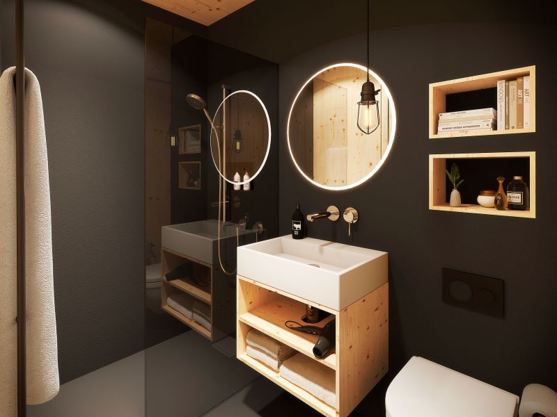 Anhand eines Grob-Konzeptes realisierten unsere Innenarchitekt/-innen ein detailliertes, visuell erfassbares virtuelles Interior-Design. Neben den hohen Gestaltungsansprüchen unserer Auftraggeber wurde auch die mögliche Realisierung in der hauseigenen Schreinerei und Schlosserei mitberücksichtigt. Entstanden ist ein unverwechselbares «Trauffer Erlebniswelt und Bretterhotel» Interior-Design.